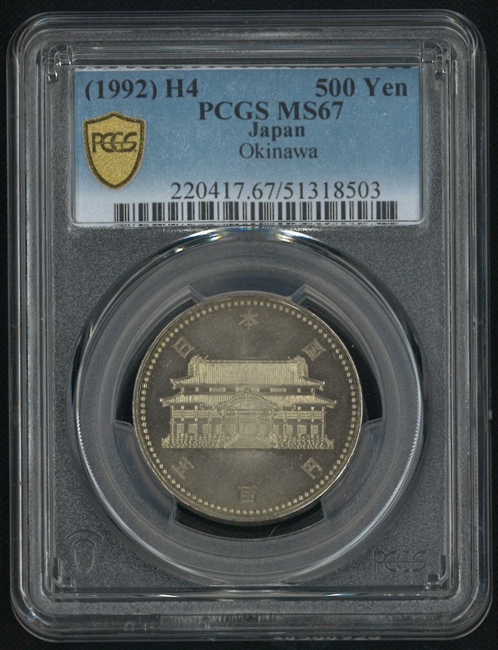 1992, 日本沖繩回歸二十週年紀念 500 円. PCGS MS67.