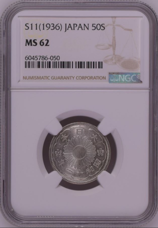 Japan, S11 (1936), 50S Silver coin, NGC MS 62.