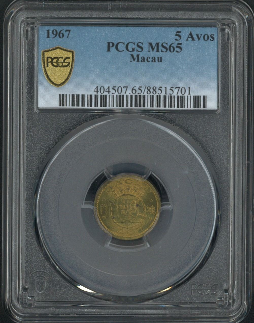 Macau, 1967, 5 Avos, PCGS MS65.