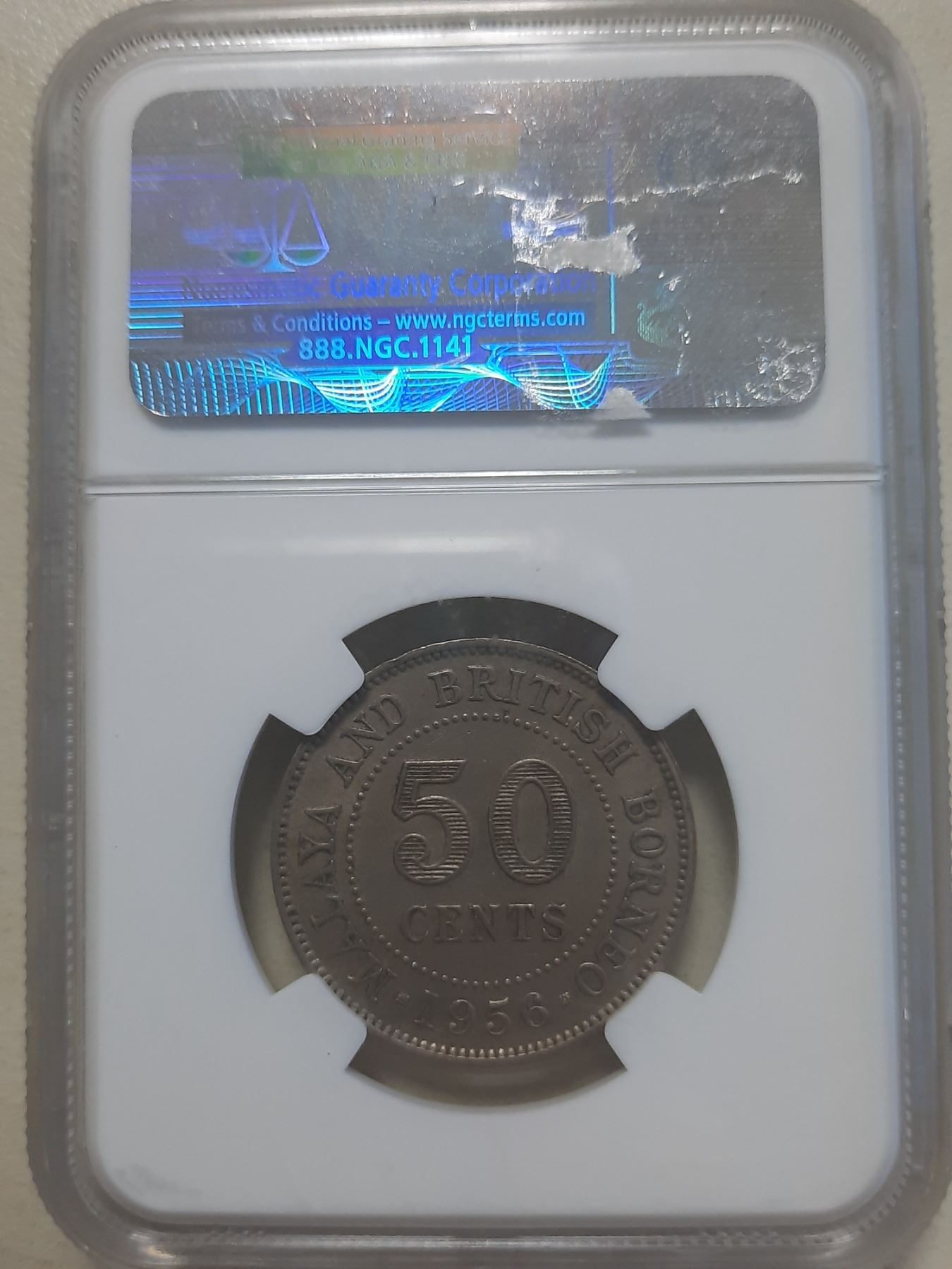馬來西亞, 50 仙 硬幣, 1956, NGC AU55, Malaya, 50 cents coin, 1956, NGC AU55