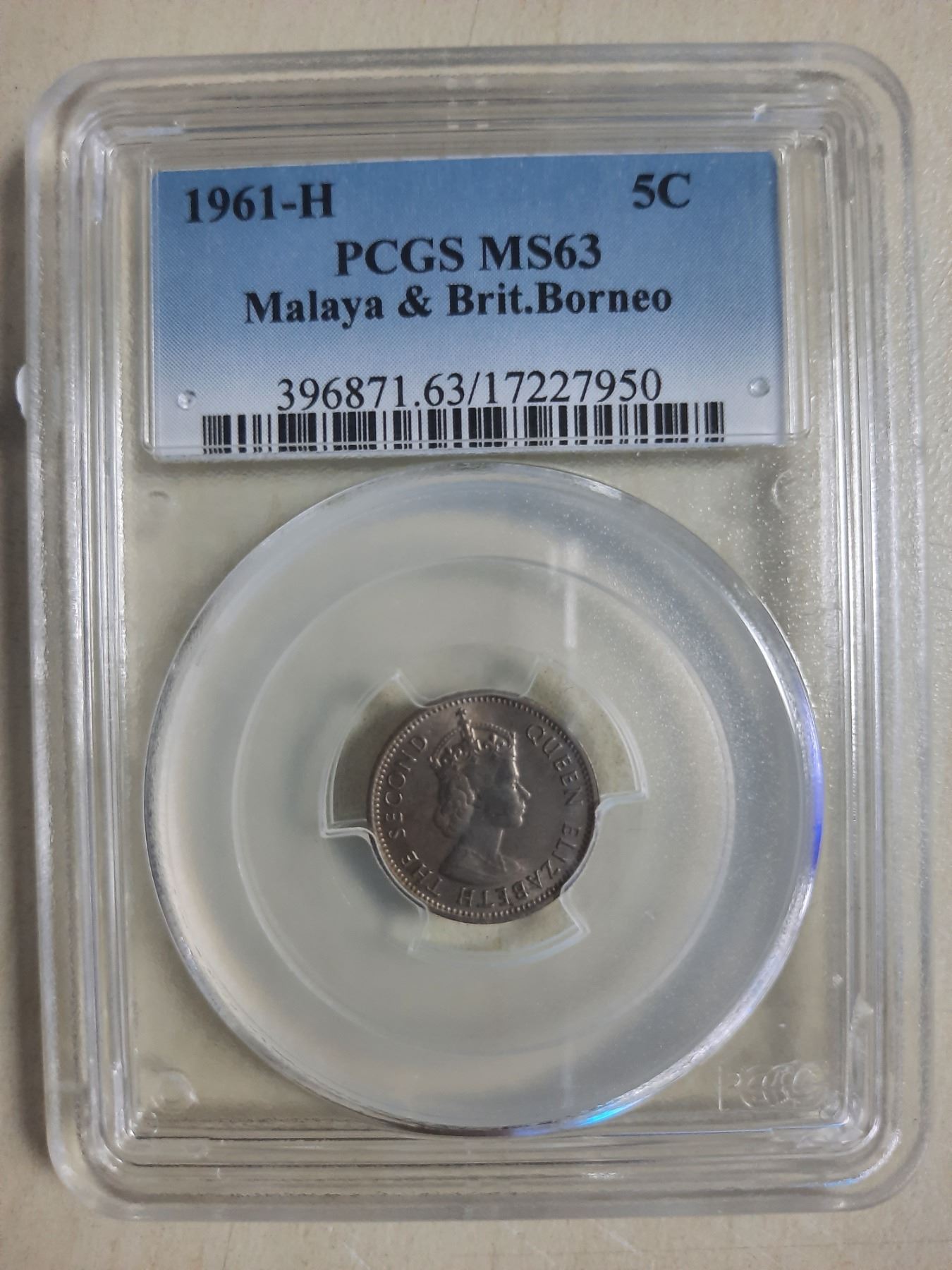 馬來西亞 & 英屬婆羅洲, 5 仙 硬幣, 1961-H, PCGS MS63, Malaya & Britain Borneo, 5 cents coin, 1961-H, PCGS MS63