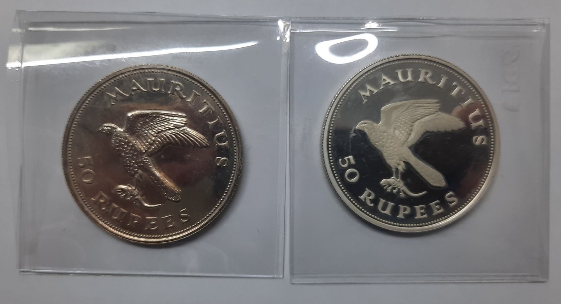 1975 Conservation - Mauritius Kestrel, one regular silver 及 one proof silver, 1975 Conservation - Mauritius Kestrel, one regular silver and one proof silver