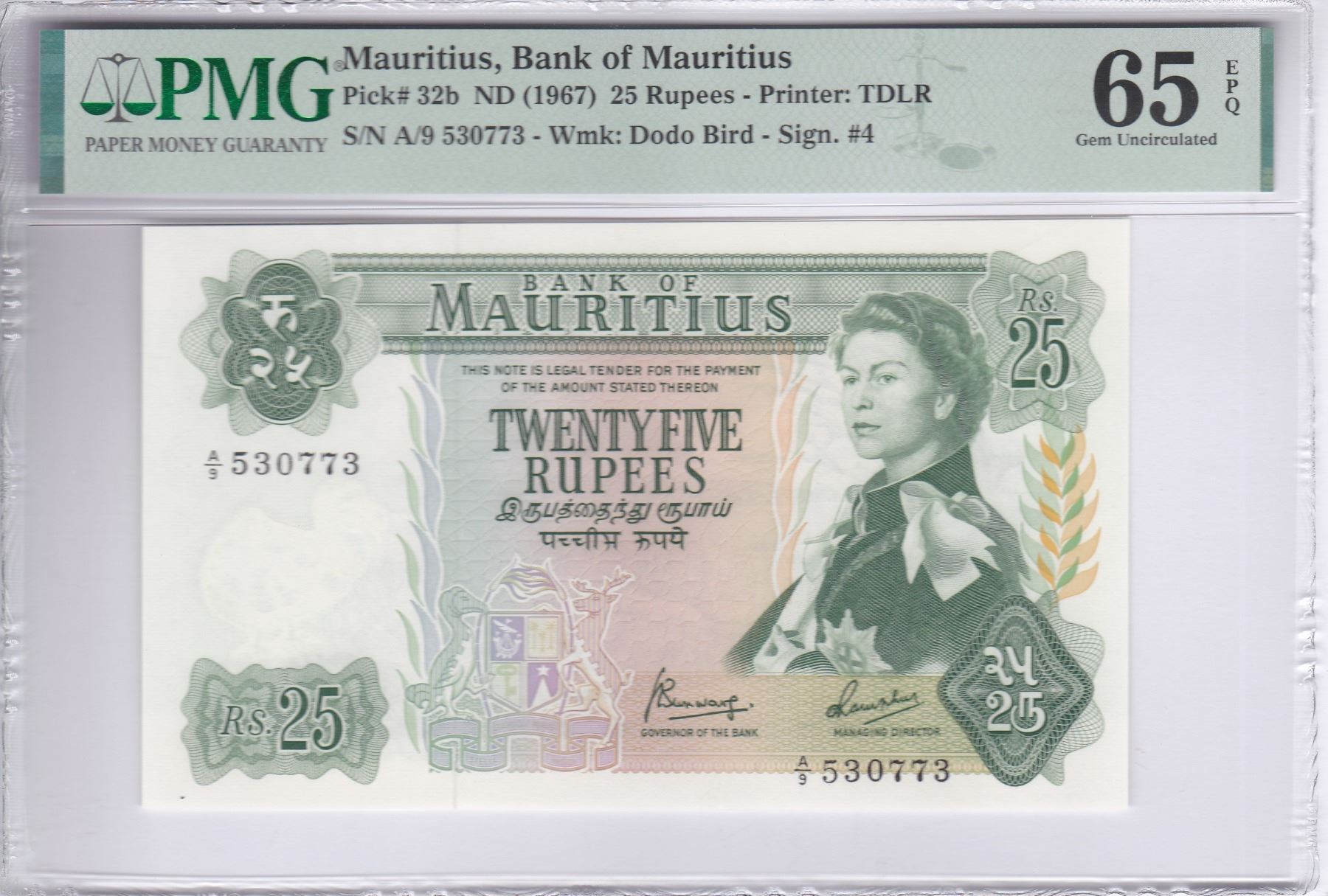 Mauritius, ND (1967), 25 Rupees, A/9 530773. PMG 65EPQ.