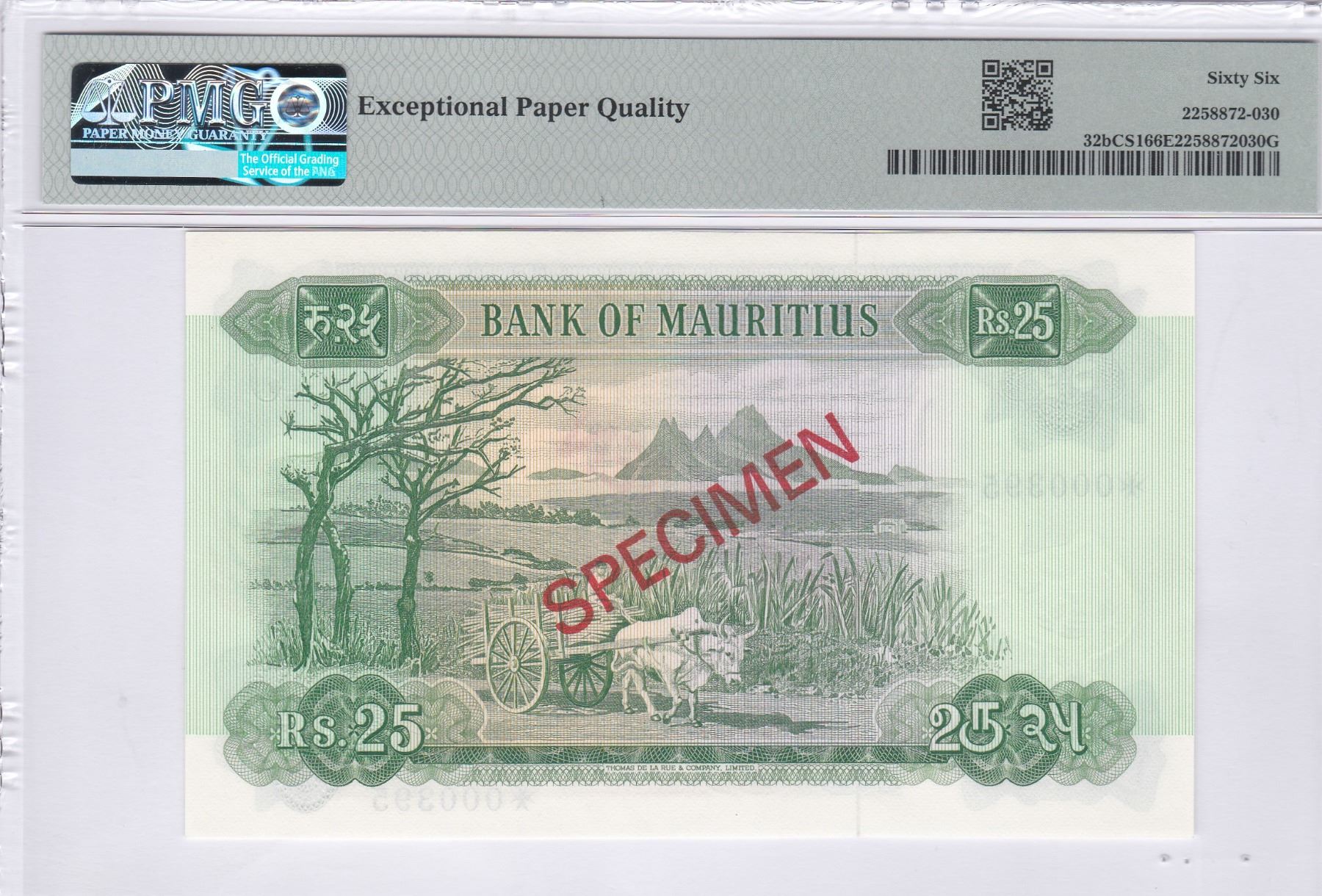 ND (1978), 毛里裘斯, 收藏家系列樣票, 5 盧比, 編號:*000395. PMG 66EPQ. 細序號:395
