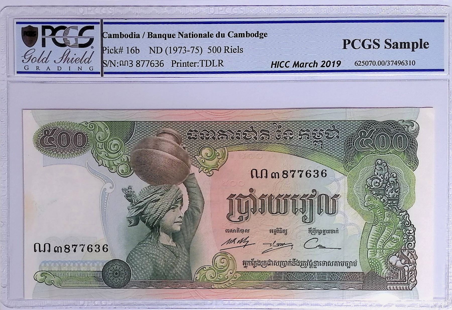 ND (1973-75), 柬埔寨 3877636 (HICC March 2019) PCGS 樣本 (少黃) ND (1973-75), Cambodia 3877636 (HICC March 2019) PCGS Sample (with little foxing)