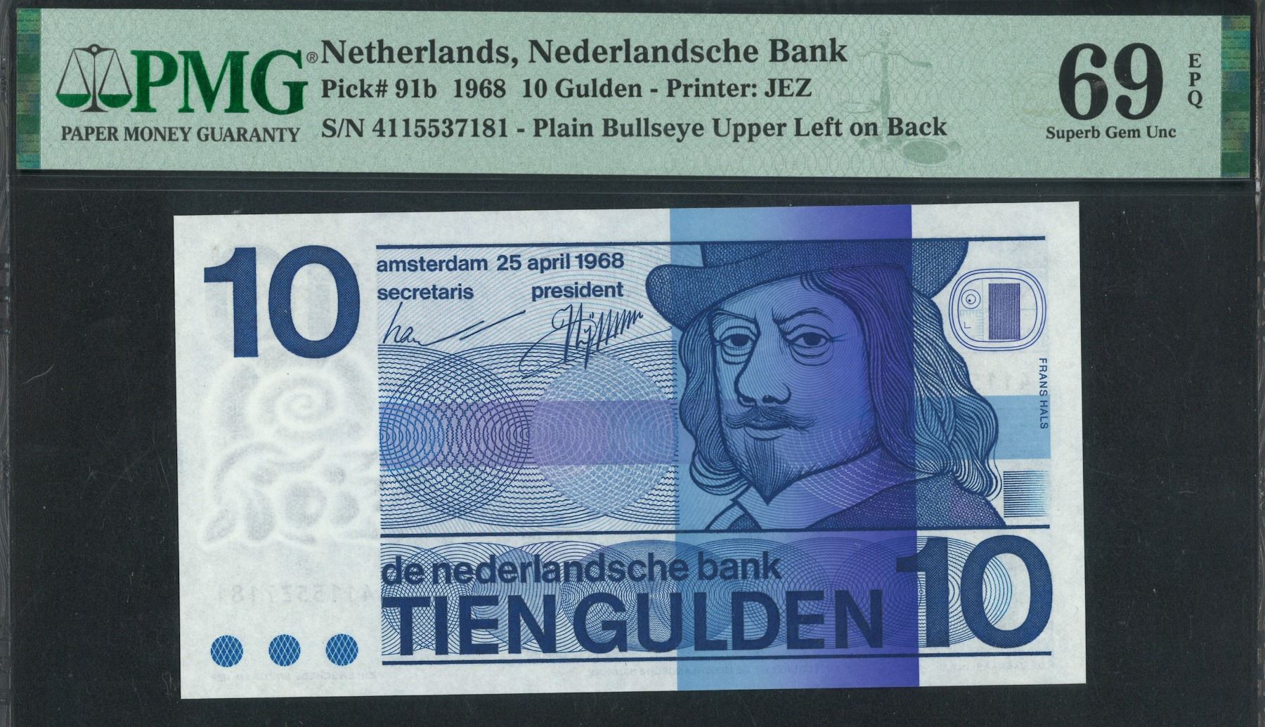 Netherlands, 1968, 10 Gulden, 4115537181. PMG 69EPQ.
