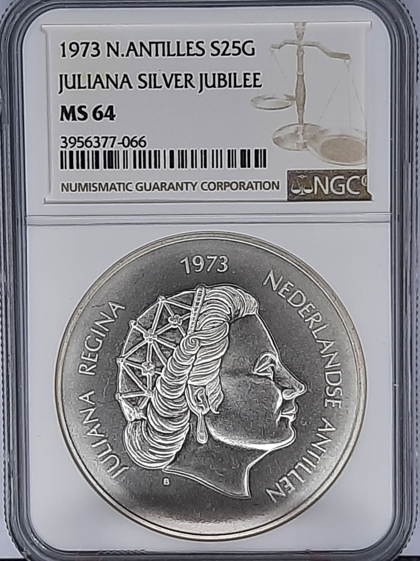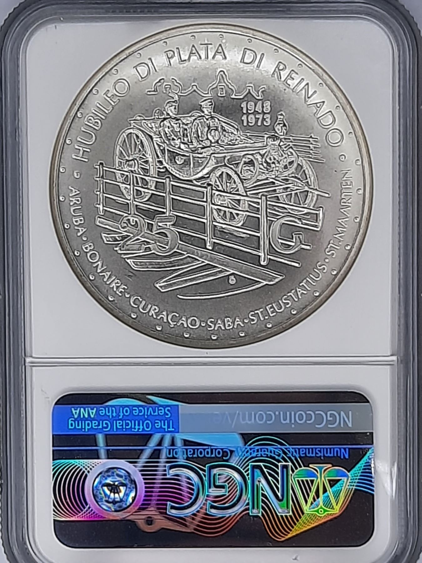 荷屬領地, 25 Gulden 銀幣, Juliana Silver Jubilee, NGC MS64, Netherlands, Antilles, 25 Gulden silver coin, Juliana Silver Jubilee, NGC MS64