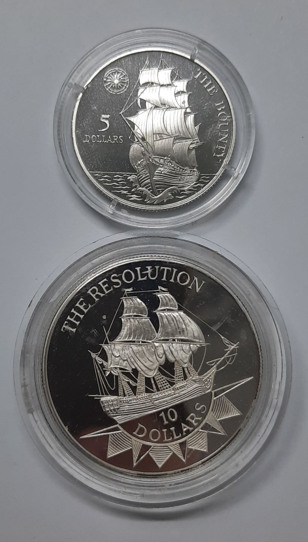 2 套精鑄銀幣包括1992 年 5 圓 及 10 圓 Set of 2 silver proof coin, contain, 1992 5 dollars HMS Bounty, and 10 dollars The Resolution