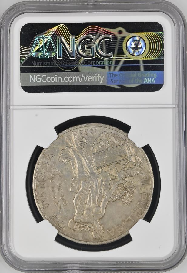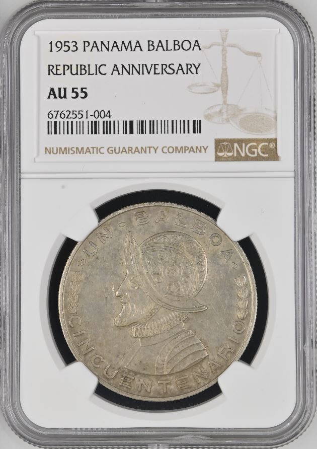1953, 巴拿馬建國50 週年銀幣, NGC AU55.