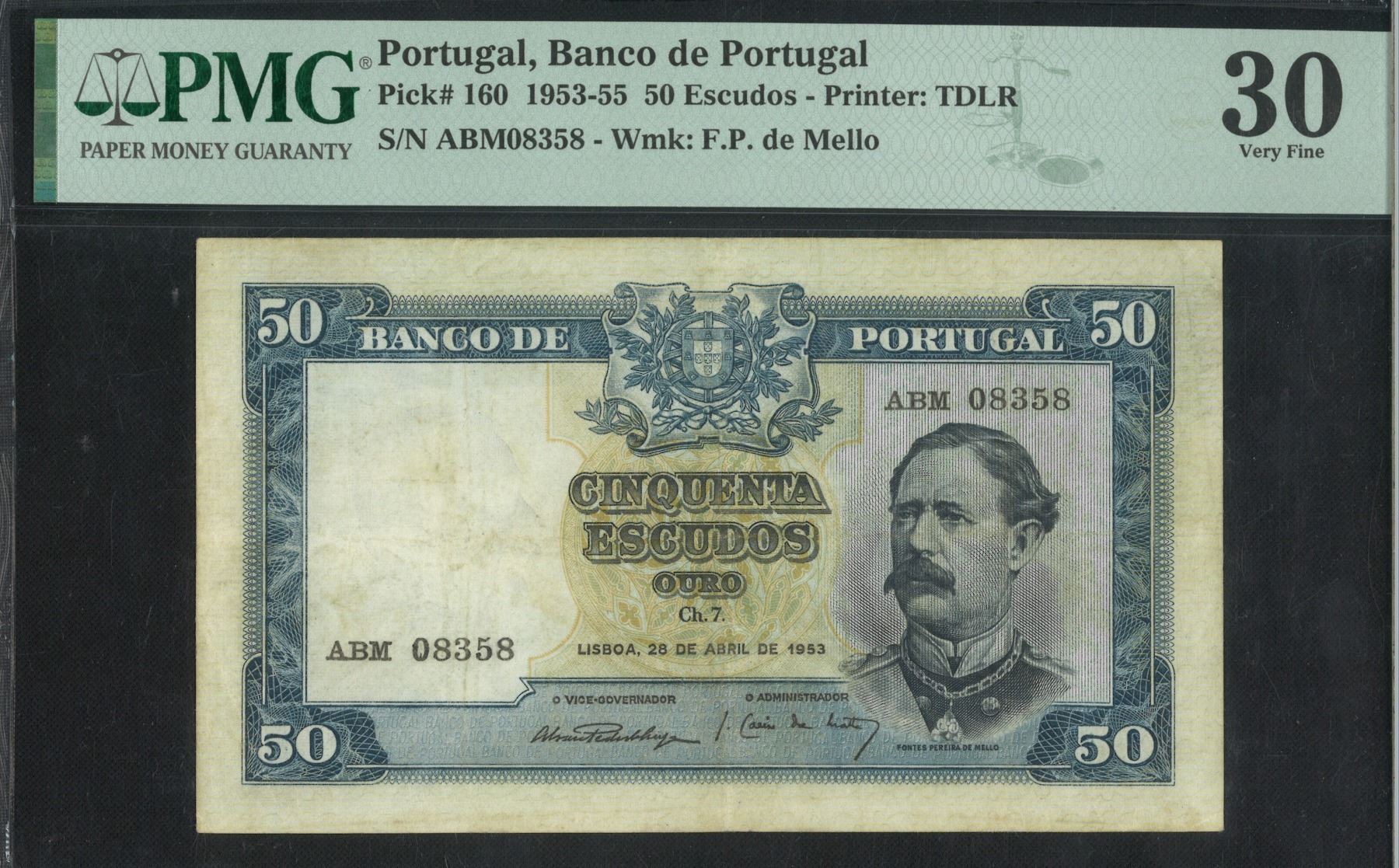 Portugal, 1953-55, 50 Escudos, ABM08358. PMG 30.