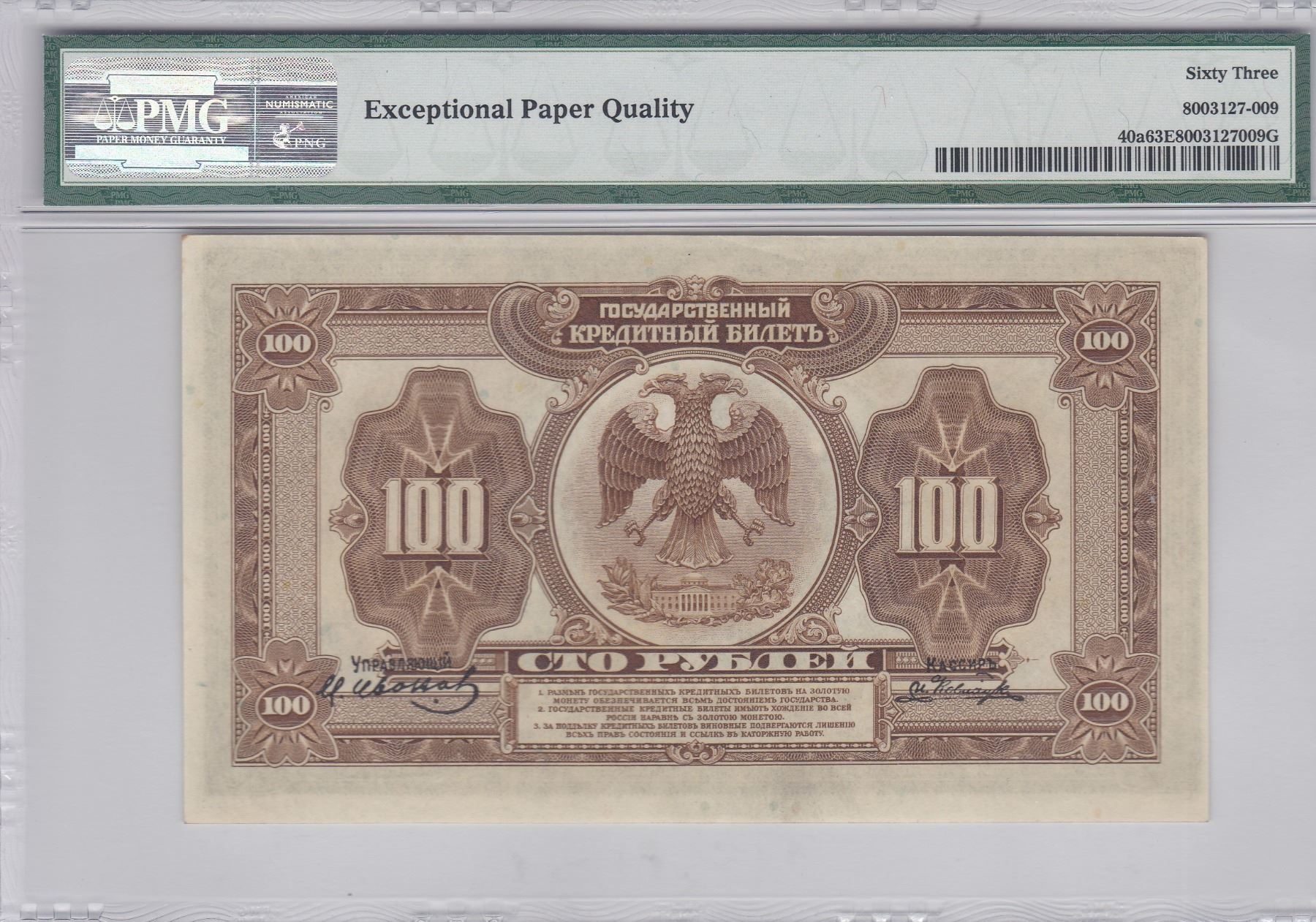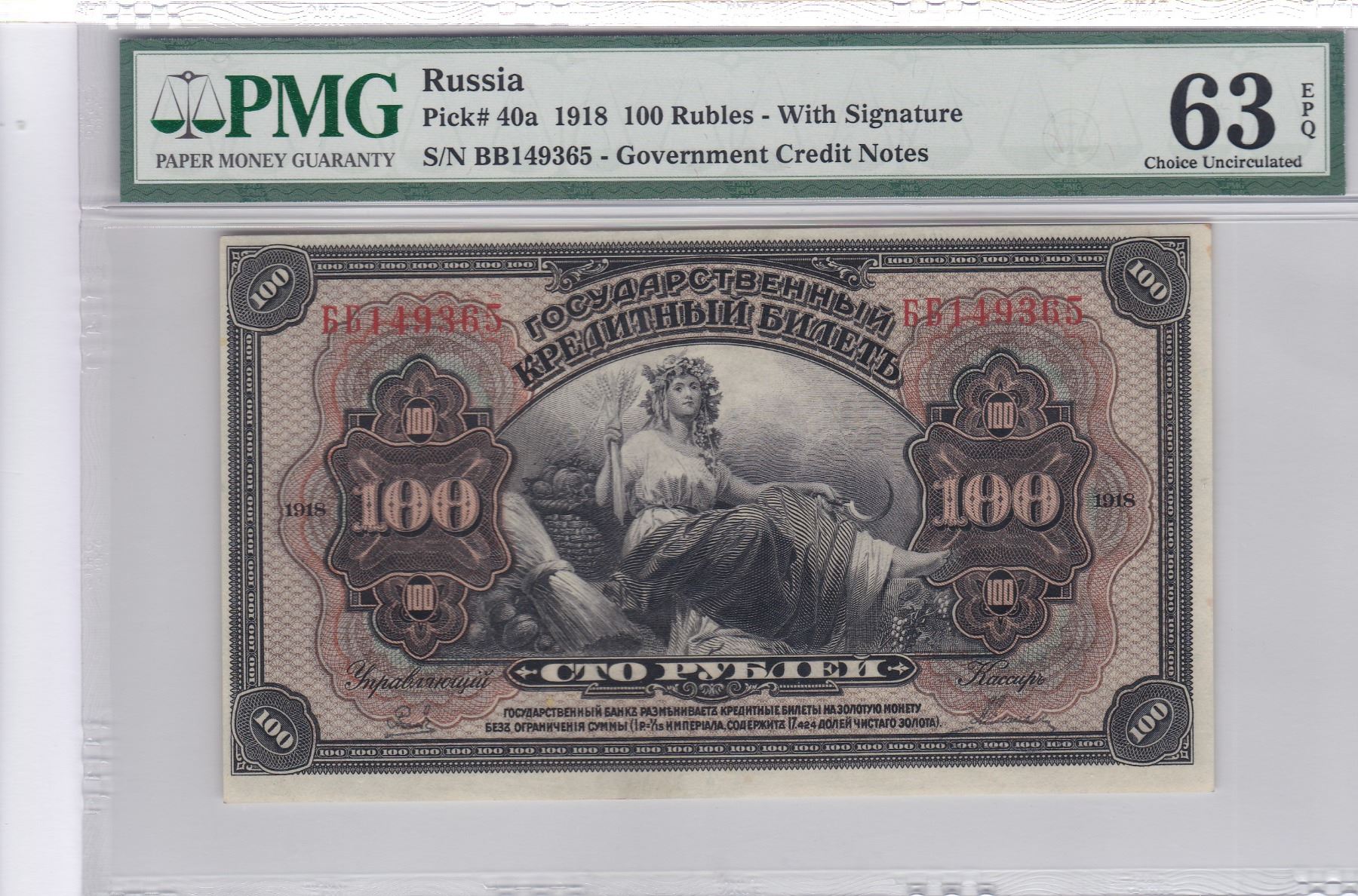 1918, 俄羅斯, 100盧布, 編號: BB149365. PMG 63EPQ.