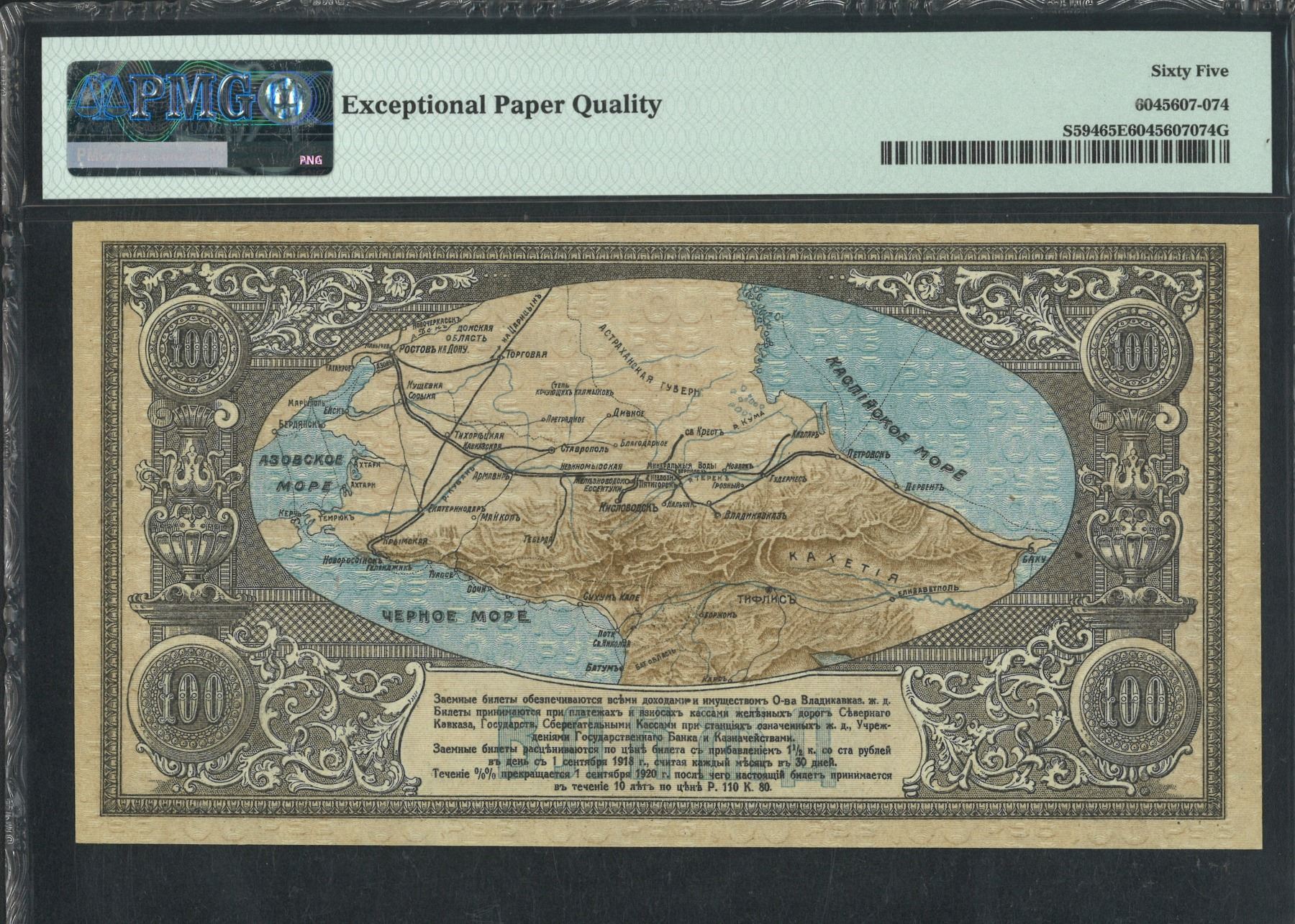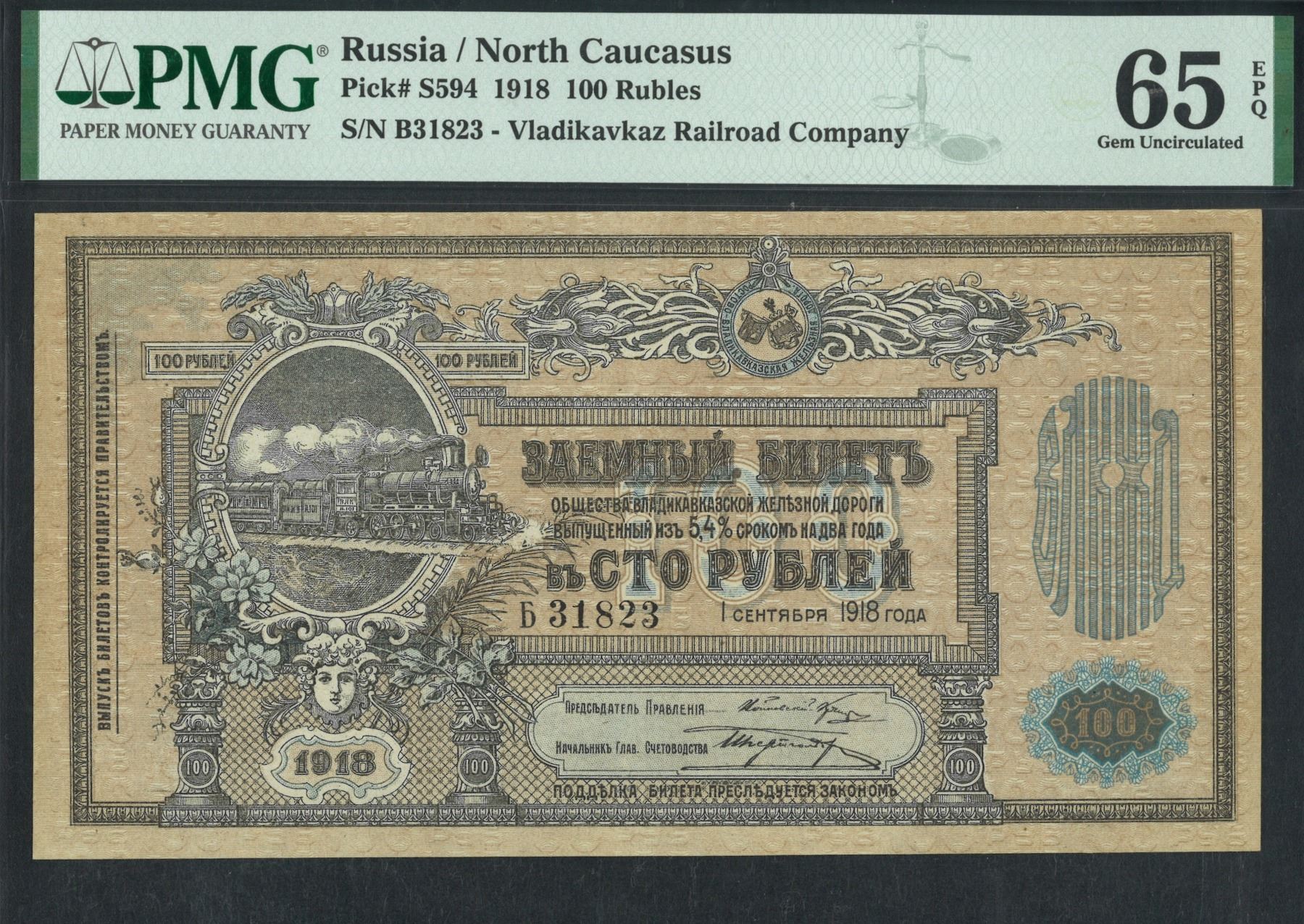 1918, 俄羅斯/北高加索, 100 盧布, 編號: B31823. PMG 65EPQ.