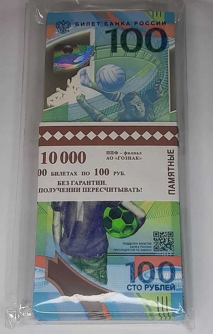 AA 冠, 2018 俄羅斯 100 Ruble, FIFA 世界盃 紀念鈔100連號, Bundle of 100, UNC Condition, Polymer Banknote, Prefix AA, 2018 Russia 100 Ruble, FIFA World Cup Commemorative