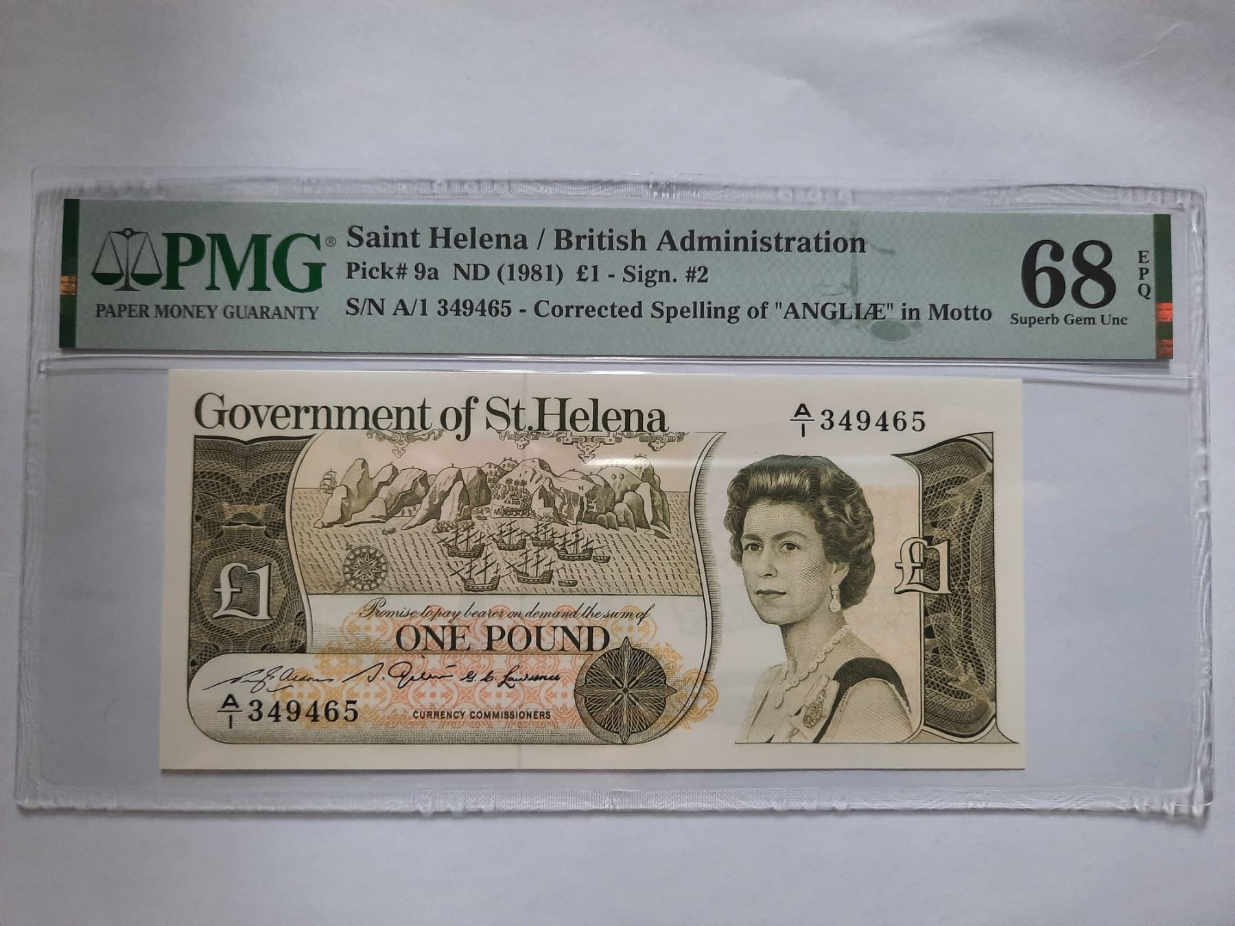 A/1 349465, ND 1981 聖凱倫拿島, 1 鎊, PMG 68EPQ, A/1 349465, ND 1981 Saint Helena/British Administraion, 1 Pound, PMG 68EPQ
