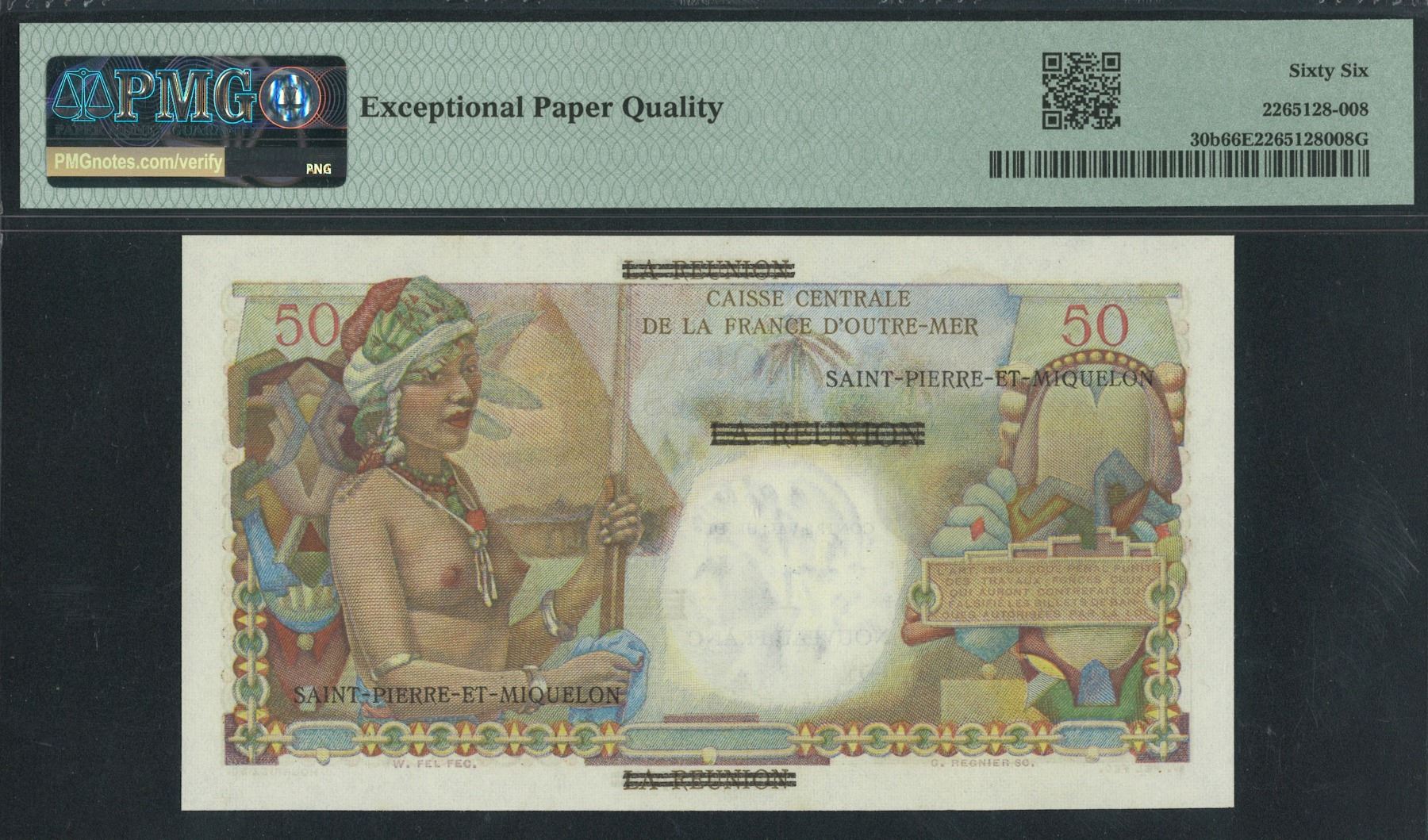Saint Pierre & Miquelon, ND (1960), 1 Nouveau Franc on 50 Francs, J.30 46936. PMG 66EPQ.