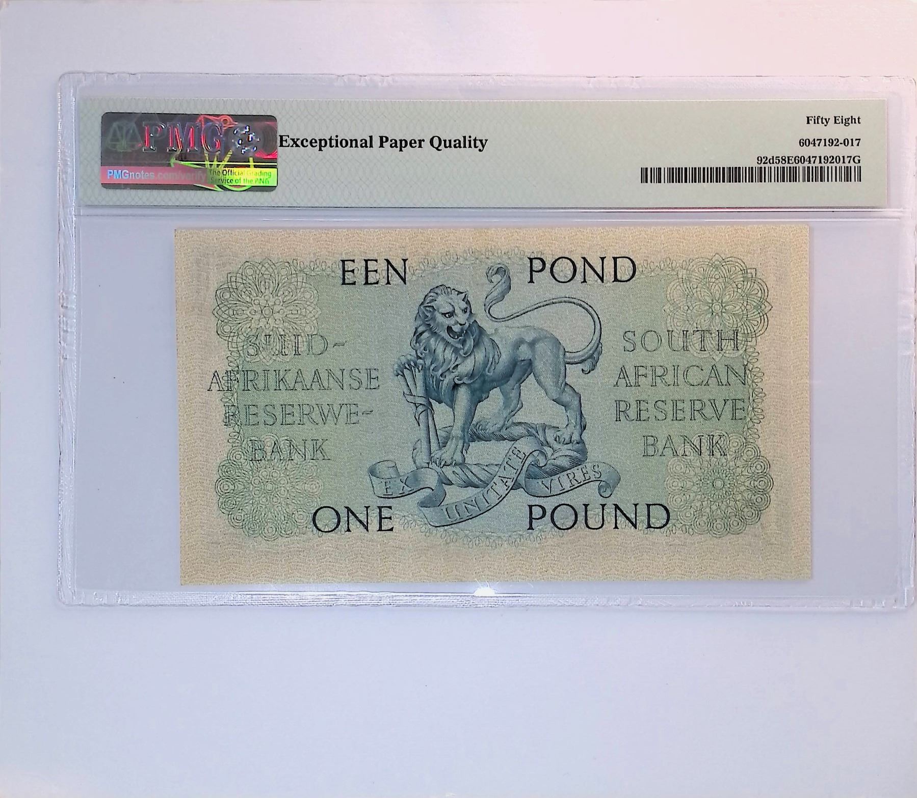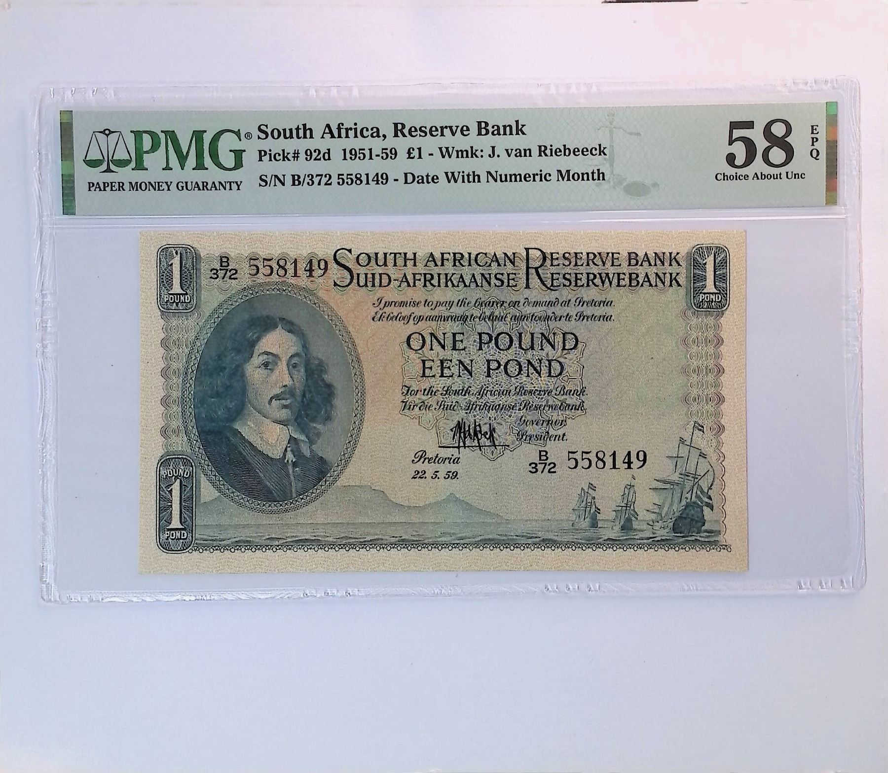 South Africa, 1951 -59, 1 pound, B/372 558149, PMG 58EPQ