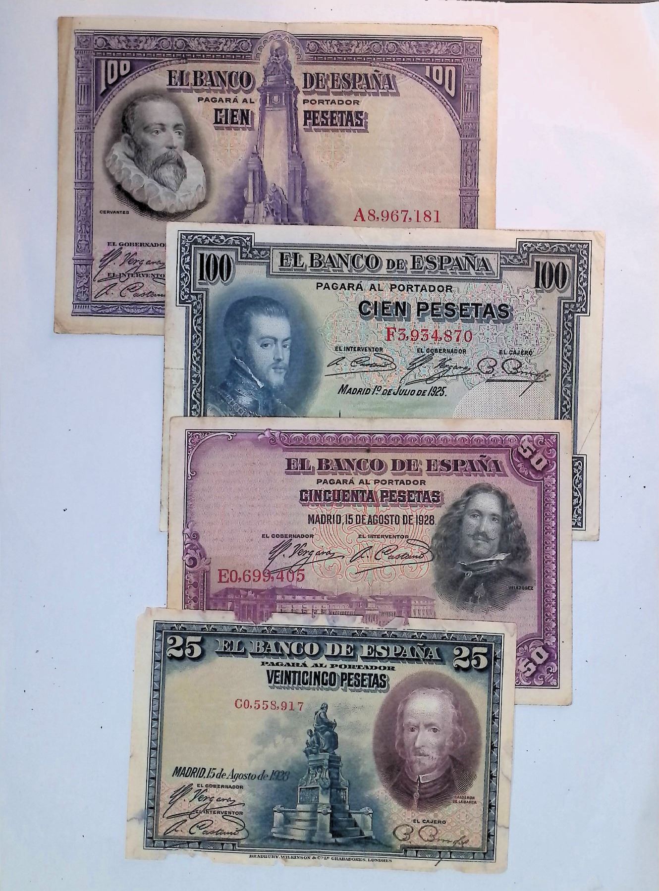 Spain, 1925-28, Set of 5, 25-100 espana, VG -VF condition