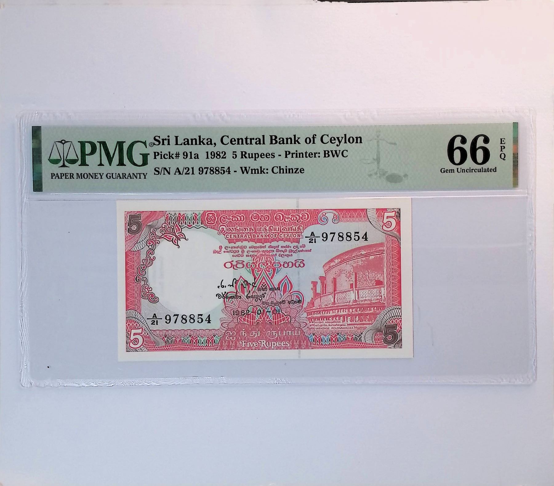 Sri Lanka, 1982, 5 Rupees, A/21 978854 PMG 66EPQ