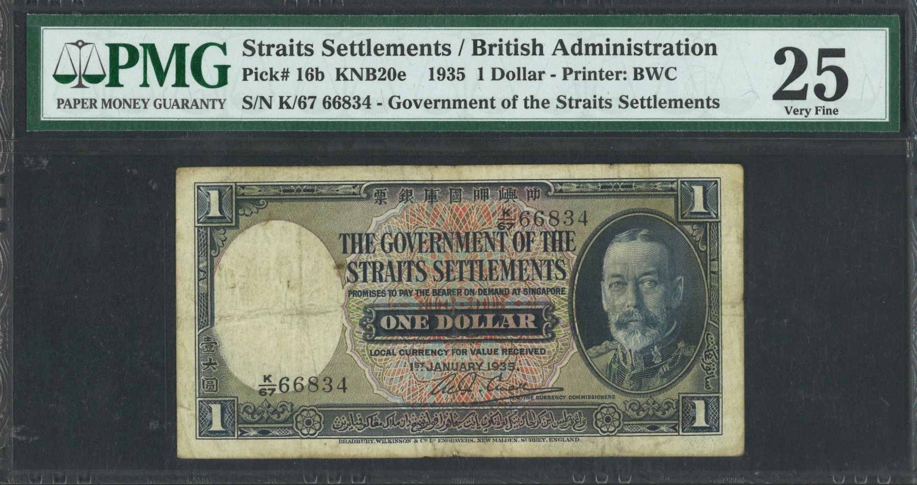 1935, 英屬海峽, $1, 編號: K/67 66834. PMG 25.