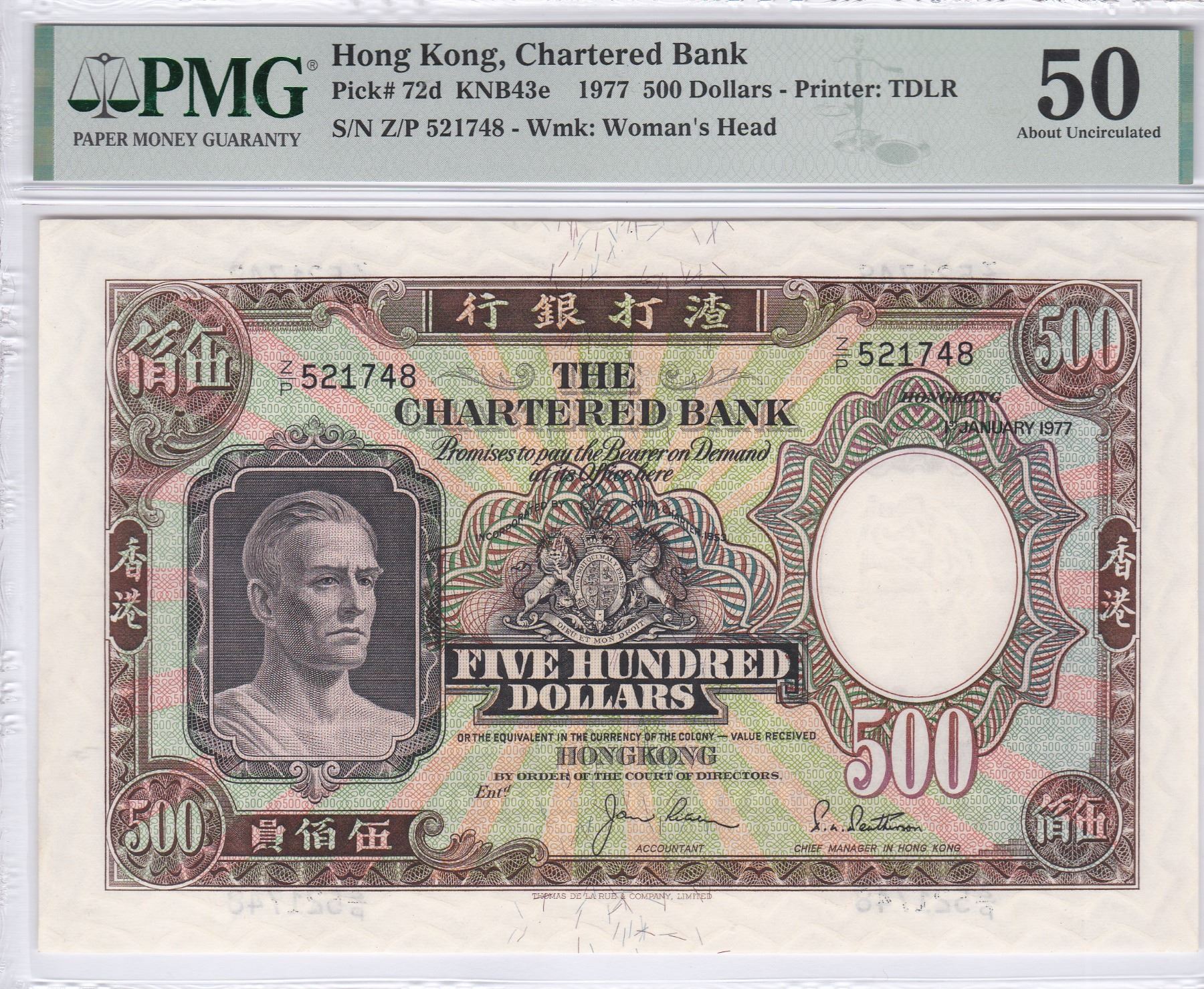 1977,渣打銀行, $500, 編號: Z/Q 521748. PMG 50. 熱門品種