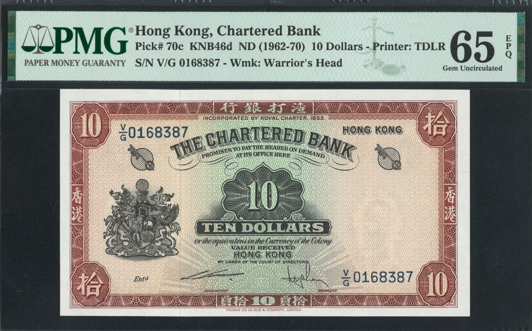 ND (1962-70), 渣打銀行, $10, 編號: V/G 0168387. PMG 65EPQ.