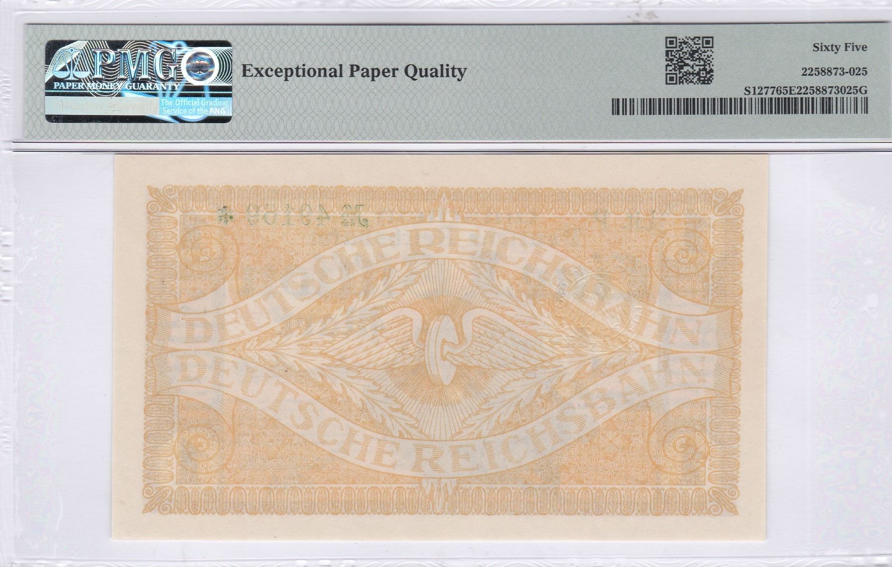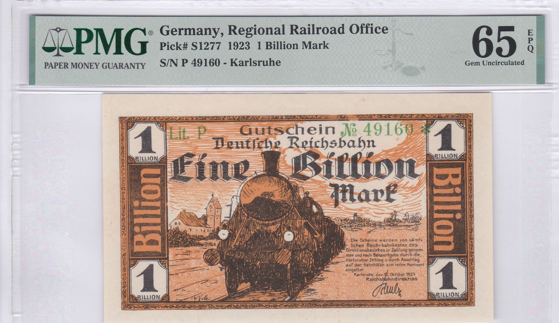 [冠軍分] 1923, 德國地區鐵路公司, 十億萬馬克, 編號: 49160. PMG 65EPQ. 罕有, 此為唯一冠軍分,全PMG紀錄只有3 張評級鈔出現