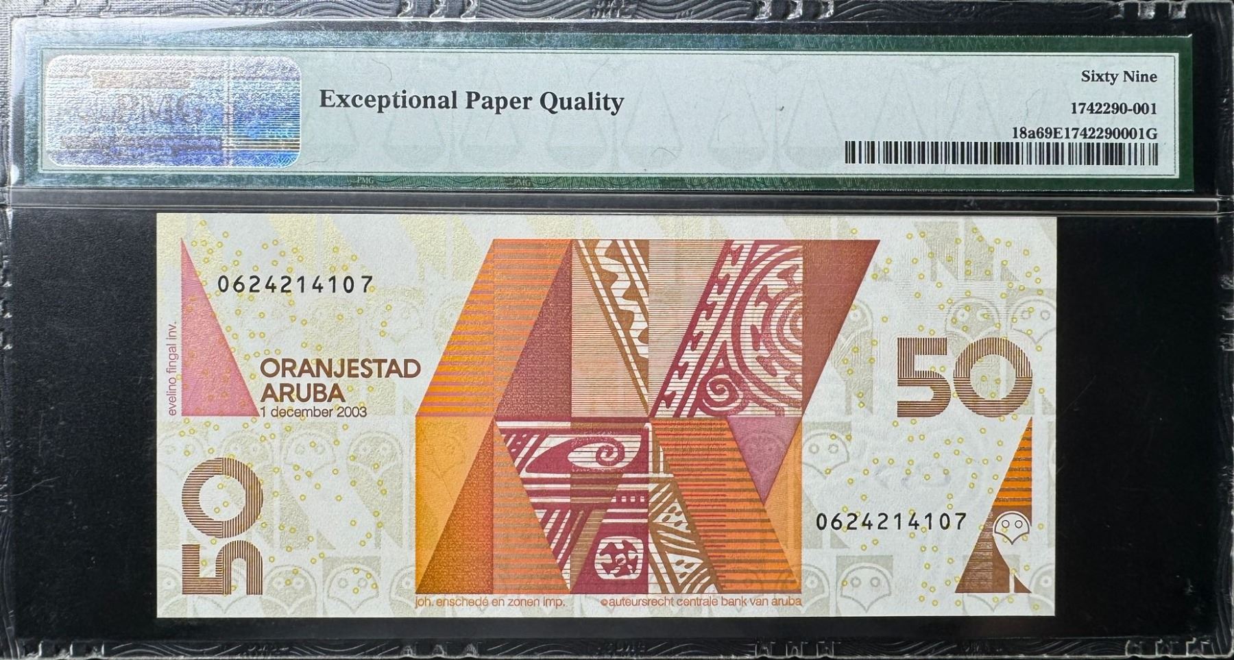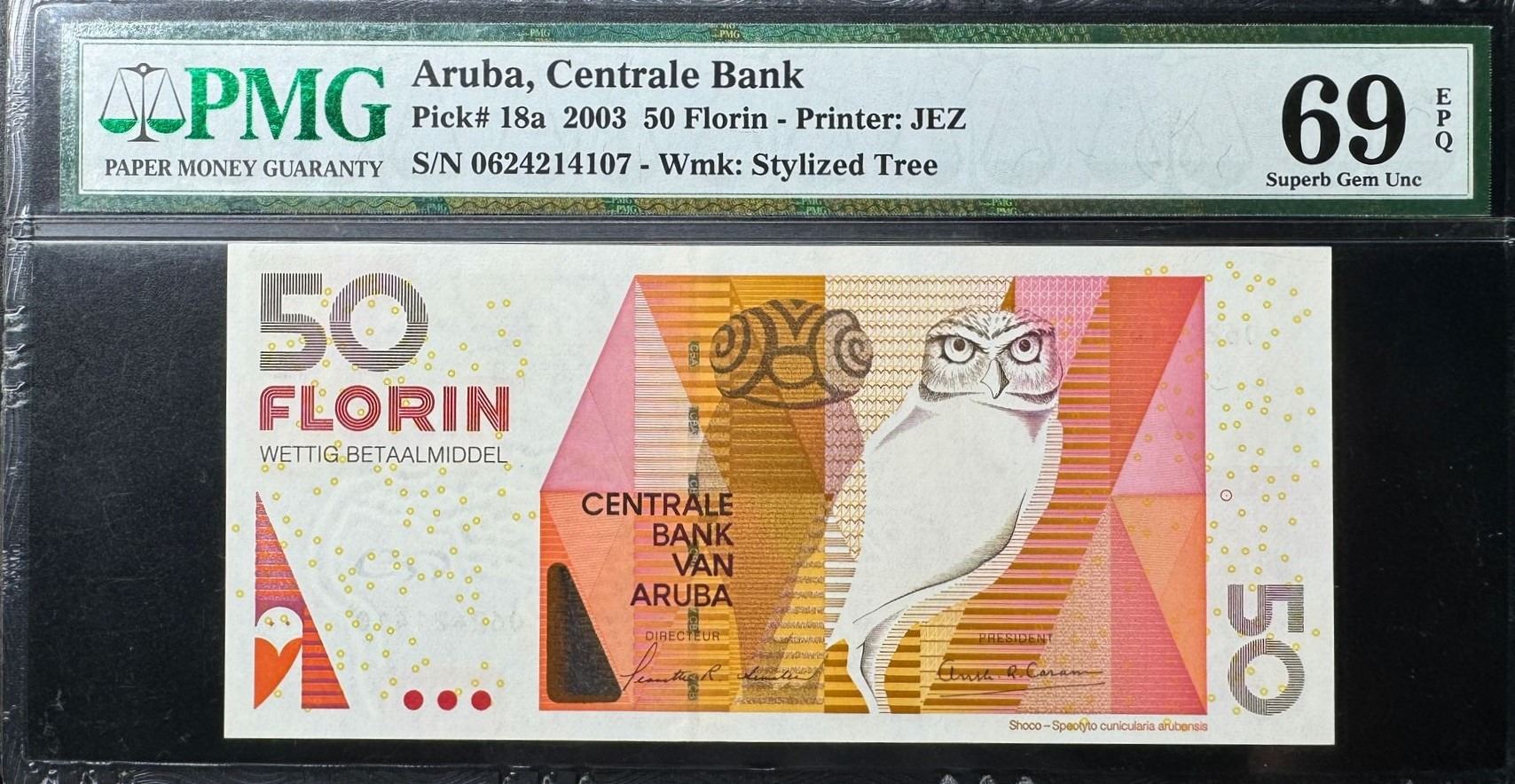 [冠軍分] 2003, 阿魯巴, 50弗羅林 , 編號: 0624214107. PMG 69EPQ. PMG 紀錄中只有2 張69EPQ.