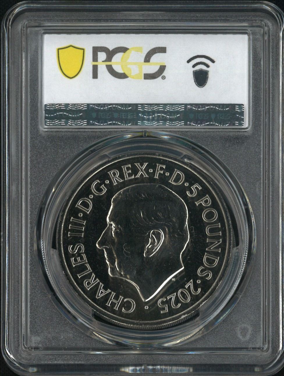[冠軍分] 2025, 英國蛇年紀念幣£5. PCGS MS69. 背面為少有英國查理三世戴上皇冠的頭像, PCGS 紀錄只有2隻MS69.