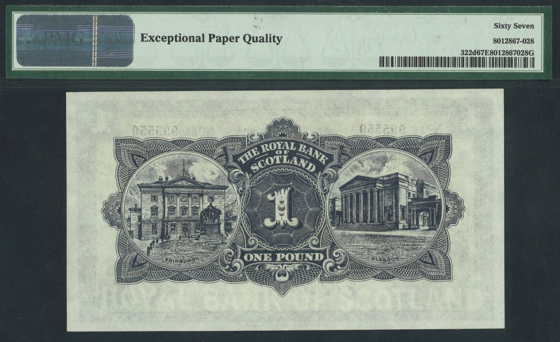 [Top Pop] Scotland, Royal Bank of Scotland, 1954 , 1 Pound, AC995559. PMG 67EPQ. Scarce. Only this k