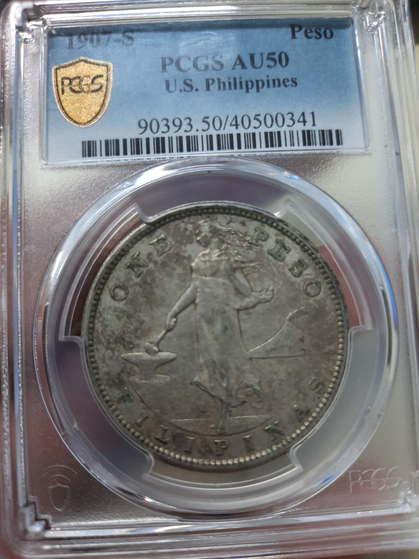 美屬菲律賓,銀幣,1907-S, PCGS AU50, US Philippines, Peso silver coin,1907-S, PCGS AU50