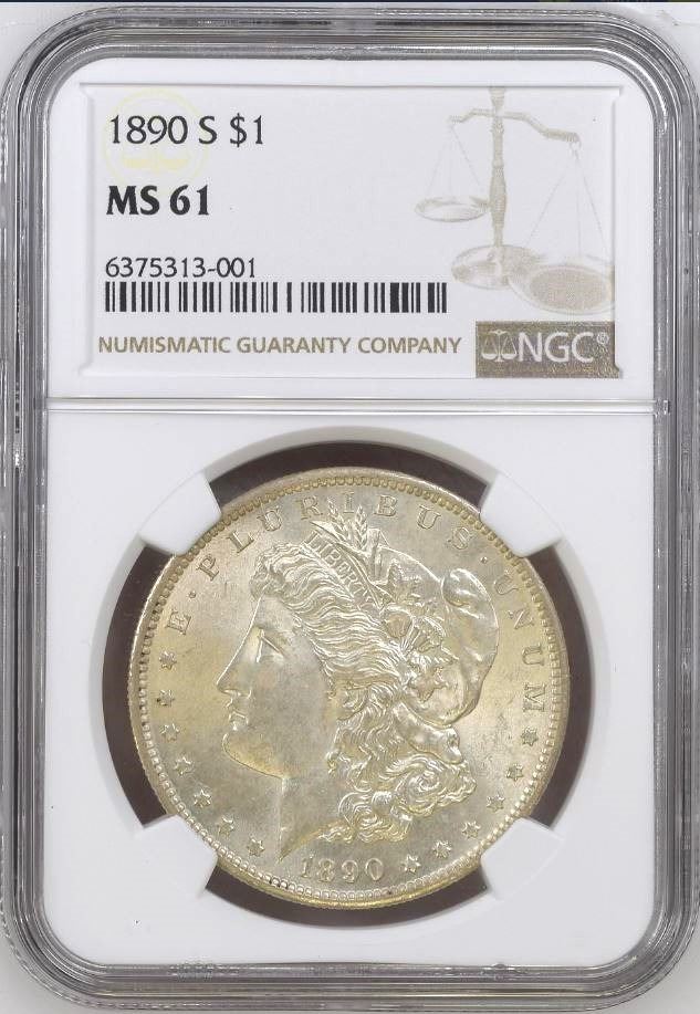 1890S, 美國$1 摩根銀圓, NGC MS61.