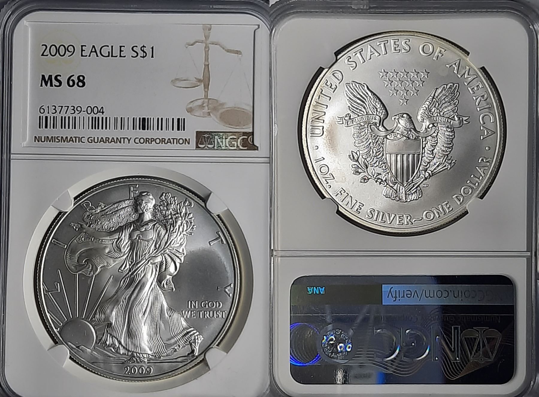 美國鷹洋, $1 圓, 1oz 銀幣, 2009, NGC MS68, USA Eagle, $1 dollar, 1oz silver coin, 2009, NGC MS68