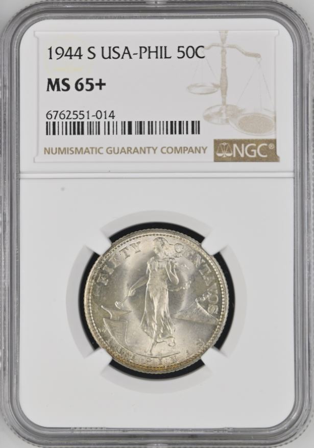 USA -Philippine , 1944, 50 cents silver coin NGC MS65+.