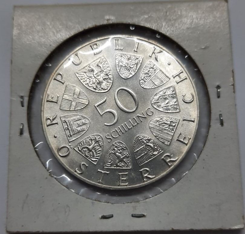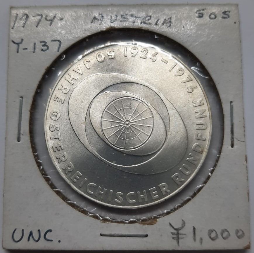 Uncirculated silver coin of 1974 Austria 50 Schilling