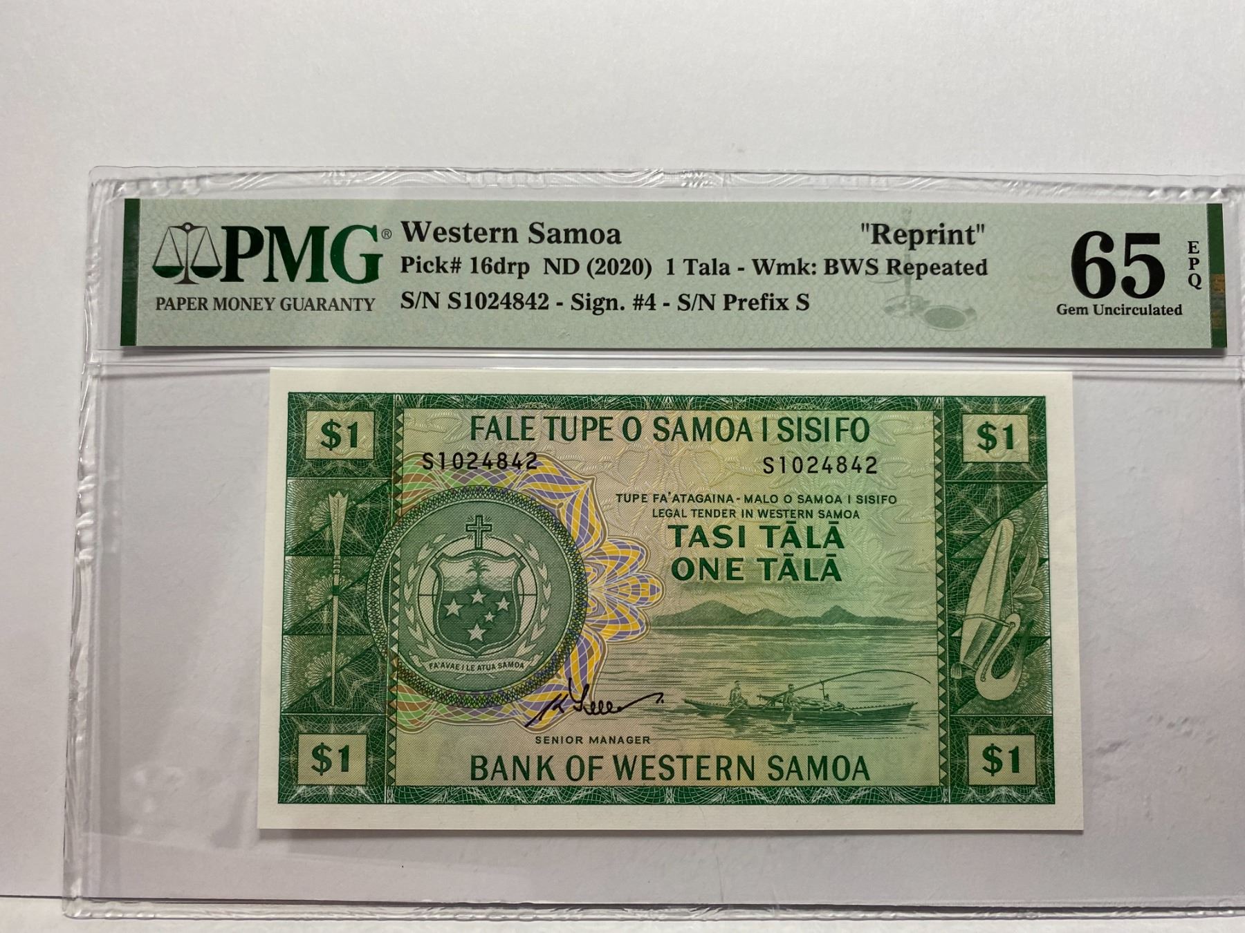 S1024842, 薩摩亞 ND 2020 重印版, 1 Tala, PMG 65EPQ, S1024842, Reprint, ND 2020 Western Samoa, 1 Tala, PMG 65EPQ